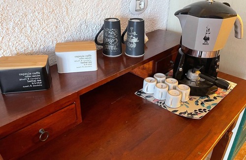 The apartment has an independent entrance, an equipped kitchen, an open space living room with a wood-burning fireplace, a double bedroom and a large bathroom with a two-person Jacuzzi tub.